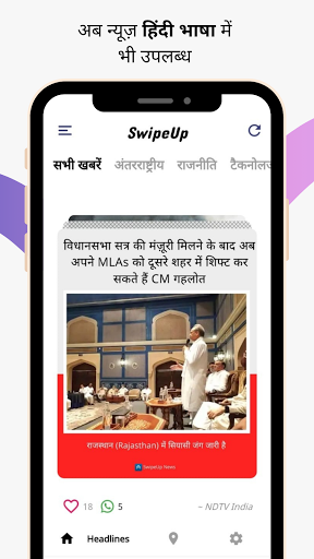 • SwipeUp curates all kinds of news and headlines from topics such as India, International, entertainment, business, technology, startups, the world, and sports - all in one place that fits your needs.