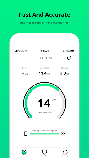 you can quickly check the network speed of mobile phones. All kinds of networks, 2G, 3G, 4G, 5g WiFi can be used, and the network speed test results can be obtained quickly and accurately