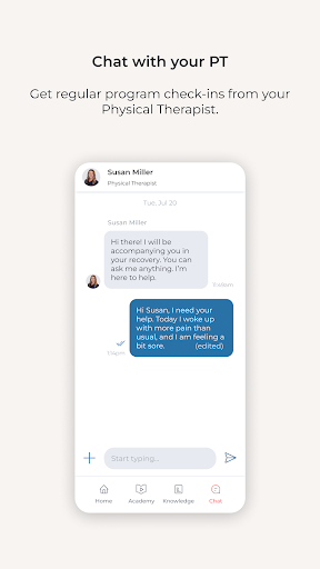 Chat with an expert: Message your Physical Therapist anytime, anywhere