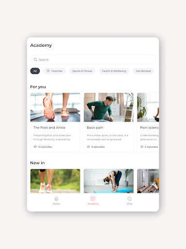- New Academy screen where members will have a better experience searching content and watching videos to learn new ways to prevent pain.