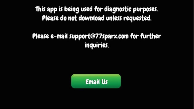 This app is being used for diagnostic purposes. Please do not download unless requested. Please e-mail support@77sparx.com for further inquiries. v2