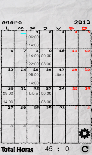 Podrás introducir una hora de inicio y otra de fin, las cuales aparecerán en el día del mes. Solo se puede planificar el mes en curso. Se trata de una aplicación sencilla y fácil de usar. Simula un cuadrante de trabajo, que lo podrás llevar en tu teléfono móvil.