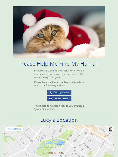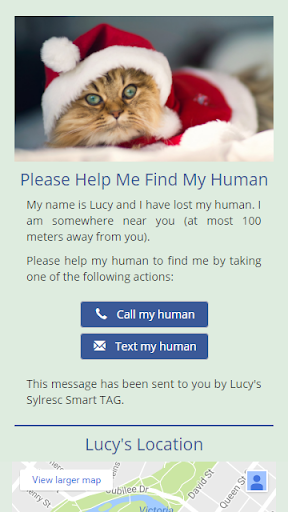 Sylresc app and smart tag gives you access to the world’s only platform which has the ability to send your help request message to people close to your lost pet to GPS-locate her and, fast and safely return her home.