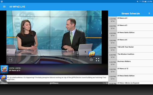 The 69 WFMZ Live App streams 69 News and other select WFMZ-TV programming. You can watch every 69 News broadcast live right on your mobile device. Stay current without changing your plans and get news, weather, sports, traffic, emergencies, and breaking stories, as well as some syndicated entertainment programming as it becomes available. With our on demand feature, you can watch newscasts and stories you may have missed. Also, you can watch the latest weather information live on the 69 News AccuWeather Channel. Now you can take the power of 69 News and WFMZ-TV with you anywhere!