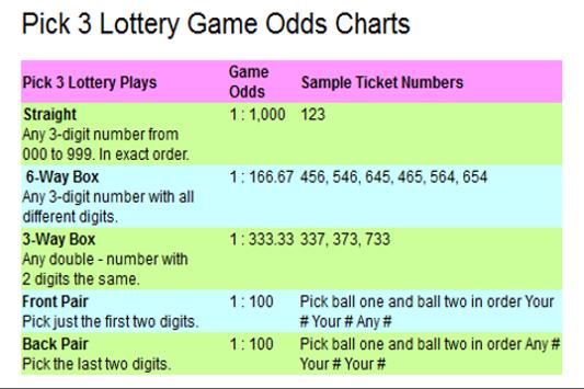 Lottery Helper Pick 3 and 4 Odds Charts Number Studies