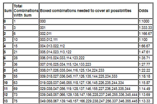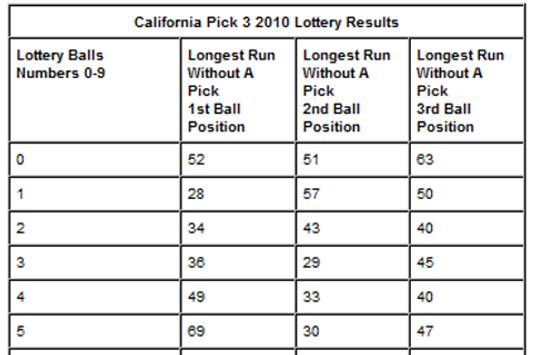 Lottery Odds Charts, Pick 3 Lottery Number Frequency Studies for