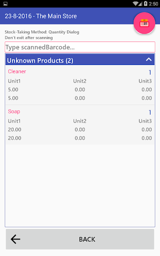 1) Detailed window: once you recognize your scanned material, you can enter stock count for any of the three material’s units.