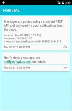 Notify Me offers you a simple and effective way to deliver push notifications to your Android devices from any internet connected device, courtesy of the cloud!