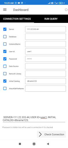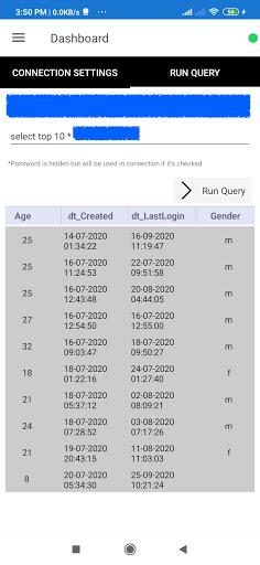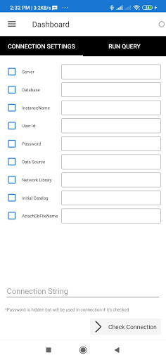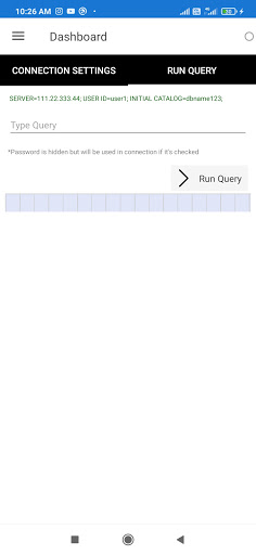 It's free tool for developers, for connecting with Database server using android device. This app dose not save any input from user not offline/online, Query history also not be saved for more safety. All kinds of Database connection and queries can be done easily any where now. (MSSQL, SQL)
