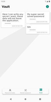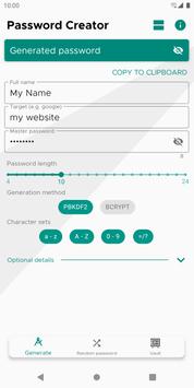 So this app is a password generator basically, but it does not generate random passwords. Instead, it requires you to provide some data like where you want to use it and your only password you want to remember. All the input you make goes through a hash generation process, which results a generated password. If the input remains the same, the output will not change.