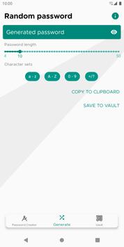 - Random passwords and vault