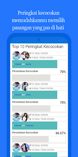 «7» Fitur Peringkat kecocokan yang sangat membantu untuk memudahkan kamu melihat daftar pengguna yang telah melakukan tes denganmu.
