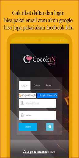 Untuk bergabung di COCOKINMYID juga ga ribet loh, kamu tinggal masukin saja email dan passwordmu. Atau kalau males bisa juga loh daftar cepat dengan menggunakan fb dan si mbak gugel.