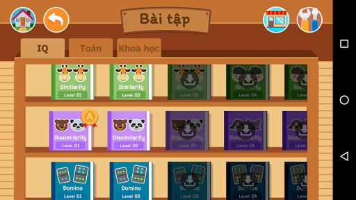 1. Bài tập IQ bao gồm 19 loại bài tập về tìm hình ảnh, vị trí, logic…, 133 bài tập và hơn 930 câu hỏi đa dạng giúp bé tăng khả năng logic, suy luận và sáng tạo