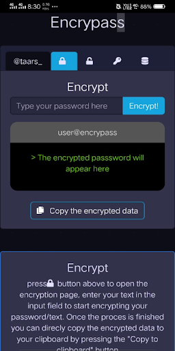 Ever got your social media hacked? or have your friends seen the password while you enter them? Now there won't be any such problem! Using encrypass you can encrypt your password into a string , this you can use as a password for your social media