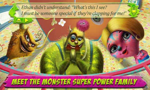 Meet the Monster Super Power Family - A Sweet Story w/ Awesome Games & Effects! Hatch a Baby Monster & Help Him Discover His Super Power, Play w/ Fun Monsters! Amazing Activities, Math Games, Dress Up, Puzzles & Cool Sound EffectsEthan’s Super Power - Discover The Monsters Family Interactive Storybook Description:A friendly and furry baby blue monster named Ethan is about to be born into a family with sensational super powers! In this empowering story, kids will learn that the greatest power is actually within themselves to make anything happen. But first, a baby monster needs to be hatched! Tap the shell until the egg cracks and meet adorable baby Ethan and his family of friendly monsters.Ethan’s dad has a super power of disguise - kids will dress up dad in cool armor, camouflage, football uniforms and more. Change the color of dad’s fur and watch him transform. Ethan’s mom is a pretty, pink monster who can fly. Kids will meet Uncle Joe who can run crazy fast, sister Melinda can make music out of anything, while cousin Sam can move metal. Kids will interact with these monsters to see the super powers in action.In this cool story with incredible graphics, dress up, and dozens of interactive elements, Ethan realizes his special super power is that he can make things happen just by thinking super hard. He uses his special brain powers all over town from the store to the playground and discovers that his unique power is actually himself. This sweet story teaches kids the important values that everyone is special in his or her own way and if you believe in yourself, anything is possible.What's inside Ethan’s Super Power - Discover The Monsters Family Interactive Storybook:✔ 13 helmets, hats & horns to dress up Ethan’s dad✔ 8 colors of fur - tie dye, spotted, red, purple & more✔ 8 outfits for dress - superhero, football player, army camouflage, & more✔ 11 items - baseball bat, sword, snowboard & more✔ Jigsaw puzzles - Awesome puzzles enhance the story and promote critical thinking skills✔ paint a-Picture - Dozens of coloring pages and paints✔ Counting - 1 to 10 counting game is cool and fun✔ memory Match - Fire up your child’s memory skills with this smart activity!✔ Placement Puzzle - Place a character in their puzzle piece✔ Find the Item - Critical thinking skills and memory come together in this fun activity✔ Memorize and Place - A great memory game that sharpens retentionEthan’s Super Power - Discover The Monsters Family Interactive Storybook Features:✔ Share with friends✔ Improved menu system✔ Read it Myself - control the reading✔ Auto Play - Automatically reads the story to you✔ Record Your Voice - Allows kids to record their own dialogue for characters✔ Puzzle games✔ Monster Dress Up - Dress up Ethan’s dad in dozens of combinations✔ Play math games at Monster SchoolWE VALUE YOUR FEEDBACKParents and kids are our best reviewers and help us create and improve our apps. We always welcome your suggestions, comments and thoughts. If you have a moment, feel free to rate and review our app. We'd also love to get your feedback to our email: support@TabTale.comABOUT TabTalesearch “TabTale” on Google Play and discover more outstanding apps for young kids. TabTale’s interactive storybooks provide an exciting and rich reading experience for manyof the most beloved children's stories. Filled with innovative and engaging activities, eachbook inspires young children’s creativity and imagination in a stimulating, enjoyable andinteractive way. More fantastic stories and games by TabTale LTD are coming soon. . .Join our facebook Page: www.facebook.com/TabTaleFollow us on Twitter: @TabTaleBy downloading this application you agree to the Terms of Use of TabTale Ltd. which are available to your review on http://tabtale.com/terms-of-use.NEED HELP?Contact us 24/7 with any questions or comments: support@TabTale.com