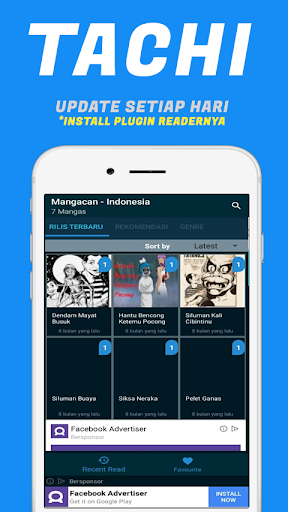 - Menu utama: Rilis terbaru, rekomendasi, riwayat baca, favorit