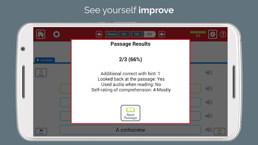 • Look back at the passage any time, or have the relevant text highlighted with a Hint