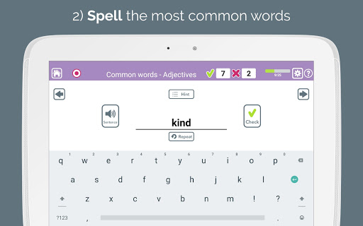 2) Spell: Practice spelling common words. The 700 words in this activity come from a list of the most common words in the English language, plus words based on vowel patterns.