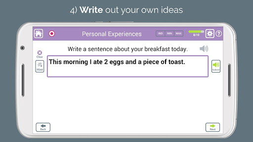**Built-in Support: Touch the Hint button to see the sentence to copy. See your errors highlighted.