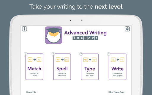 In all Tactus Therapy apps, you’ll get evidence-based activities, thousands of exercises, and an adult-friendly interface designed by a speech-language pathologist. You never have to log in, pay a subscription, or connect to Wi-Fi to use our apps. Try them for FREE by downloading the Lite versions today!
