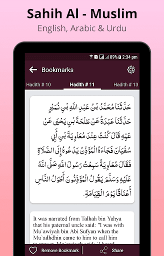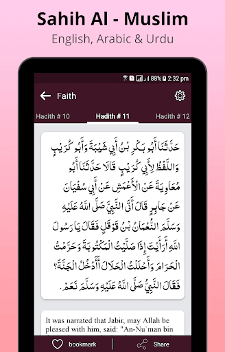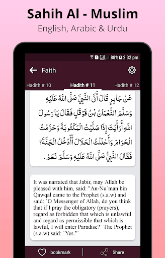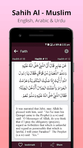- With Bookmark Funtionality, user can bookmark hadith of your own choice.
