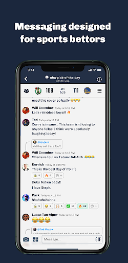 Chalkboard messaging brings the thrill of sports betting to life, and lets you take the action with you wherever you go. Live scoreboard banners in each chat display the games your group has money on at any given time. Never miss a crucial scoring moment with Chalkboard’s streamlined social betting experience, allowing you to keep a finger on the pulse of all bets in progress.