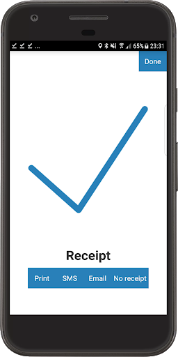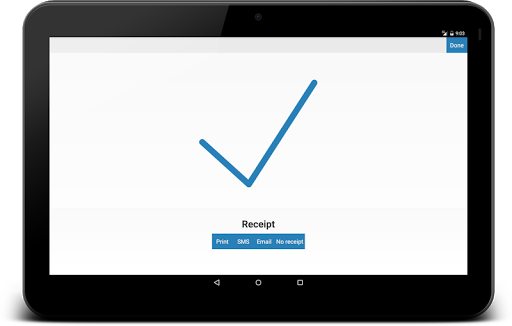 - Send receipts as email or an SMS