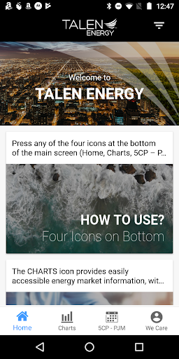 The Talen Energy app delivers daily peak load notifications, energy market data and news. The app also provides an easy way for customers and partners to get in touch with us. And, if there is a potential peak day and load reduction is recommended, we will notify you with a push notification.