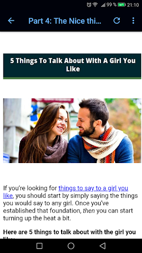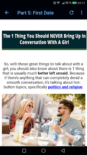 This application is to teach you, how to make a success of your first date with a girl and to win her heart.