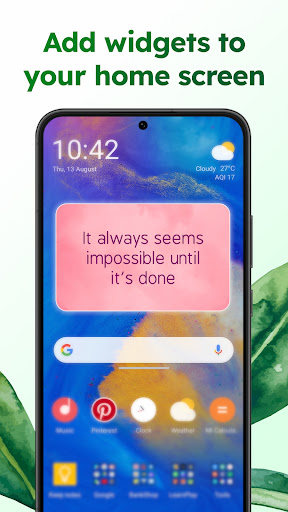 Our motivation app is filled with inspirational quotes and sayings that serve as positive reminders throughout the day. You can even use the motivation app as a quote maker, sharing your favorite positive quotes on social media.