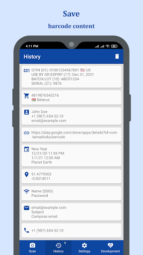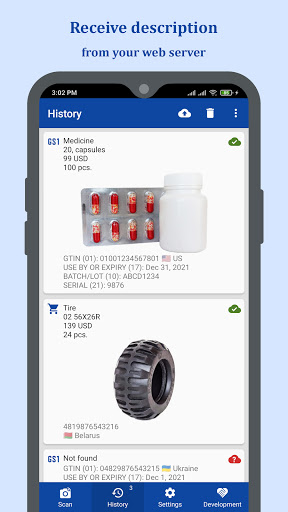 Use your mobile phone as a wireless scanner to transfer barcodes to your web server. Scan barcodes both with the device's camera and with the built-in or external hardware scanner (for example, connected via Bluetooth). Scan codes when online or offline. Send all undelivered codes to the web server at once when online.