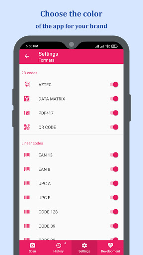 ✔ Linear codes: EAN-13, EAN-8, UPC-A, UPC-E, Code-39, Code-93, Code-128, ITF, Codabar.