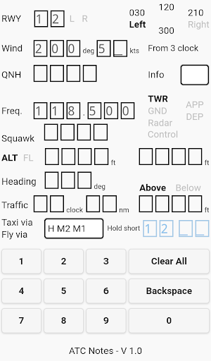 This is a simple tool for VFR pilots to replace paper and pen to read-back ATC instructions. Furthermore, it shows the headings in the runway pattern and calculates the wind direction on the clock face relative to the runway.