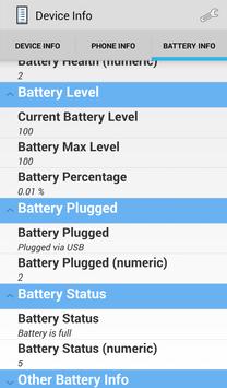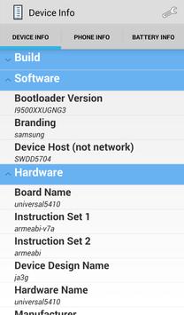 This application shows many data about your device that is available through the Android's API (no root). Information available include details about the operating system, hardware of the device, the phone/SIM, and the battery.