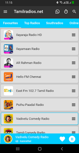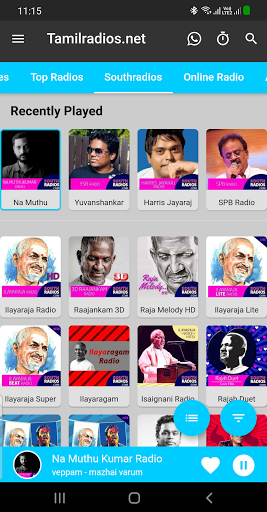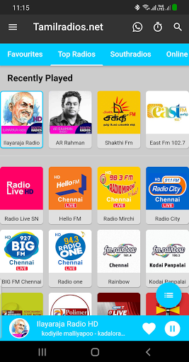 ইলায়ারজ রেডিও এইচডি, রাজকনম 3 ডি, রাজা মেলোডি এইচডি, রাজা রেডিও এইচডি, ইলিয়ারাজা লাইট রেডিও, ইলিয়ারাজ রেডিও রেডিও রেডিও, ইলায়ারগম রেডিও, ইসাইনিগি রেডিও, রাজার ডুয়েট রেডিও, ইলায়ামান রেডিও, ইলিয়ামান লাইট রেডিও, এআর রহমান রেডিও, রহমান লাইট রেডিও, তামিল 80 এর হিট রেডিও, তামিল 90 এর দশকে রেডিও, পলাওয়াইয়ায় রেডিও, গোল্ডেন সাউথ্র্যাডিওস, হাঙ্গামা চিরহরিৎ তামিল রেডিও, পুথু পাদাল রেডিও, কাভিয়ারসর রেডিও, এমজিআর রেডিও, সিভাজি রেডিও, 3 ডি পুরাদিসফম, এসপিবি রেডিও, কেজি ইসুদাস রেডিও, জনাকি রেডিও, কেএস চিড়িয়া রেডিও, সান্তোষ নারায়ণন রেডিও, হ্যারিস জয়রজ রেডিও, যুবানশঙ্কর রাজা রেডিও, অনিরুদ রেডিও, ডি ইমমন রেডিও, জিভি প্রকাশ রেডিও, তামিল পপ রেডিও, তামিল মেলোডি রেডিও, তামিল বীট রেডিও, হাঙ্গামা হট এখন তামিল রেডিও, দেবা রেডিও, মালয়েশিয়ায় বশোডভান রেডিও, দেভা রেডিও, বিদ্যাসাগর রেডিও, এসএ রাজকুমার রেডিও, হরিহরান রেডিও, ইউনিক্রিশন রেডিও, কদল রেডিও, হাঙ্গামা তামিল রোমান্টিক রেডিও, বিজয় রেডিও , অজিৎ রেডিও, থালা থালাপ্যাথি র Adio, দু: খিত গান রেডিও।