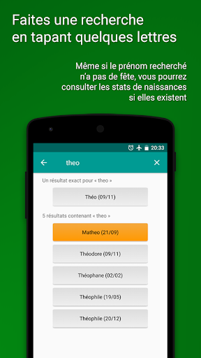 Berkat data nama depan yang disertakan secara langsung dalam aplikasi, adalah mungkin untuk mencari berdasarkan tarikh dan nama depan tanpa mempunyai rangkaian / internet.