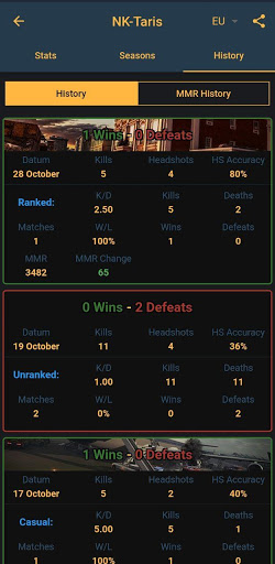 - Match history