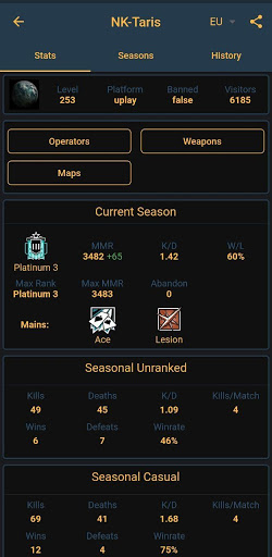 Track your Rainbow Six Siege mates or other players in the game Rainbow Six Siege and compare them or yourself with eachother.