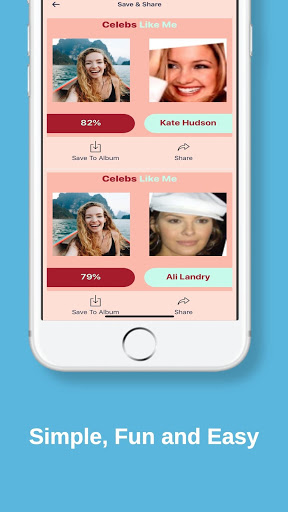 Celebs Like Me determines which celebrities look like you. It uses advanced machine learning API based on a deep neural network to search through a database of over 20 000 celebrities.