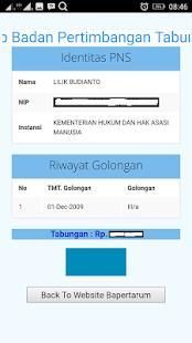 Aplikasi ini dibuat untuk menampilkan saldo pns pada tabungan perumahan yang di kelola oleh Bapertarum-PNS