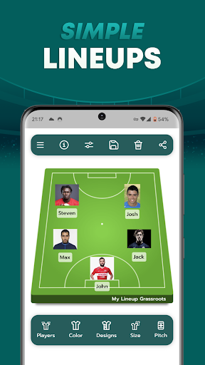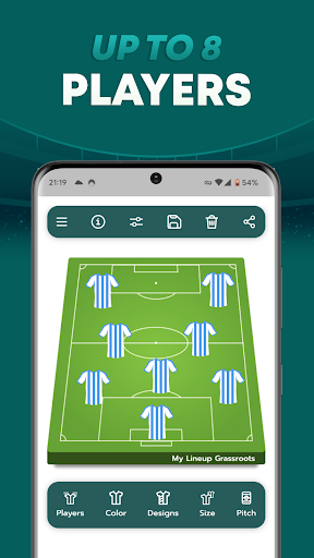 This app has been designed specifically for grassroots football players looking to organise and show their lineups to their teams. Choose from 5-8 players and easily move them around the pitch.