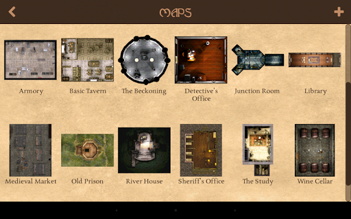 More than 150 miniatures and 12 maps are included or you can add your own from pictures stored locally on the device.