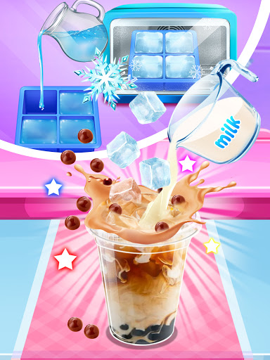 -How about adding some ice? Sound great. An icy bubble tea is now ready.