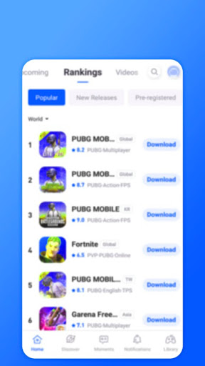 It shows you where you can find games trending list like tap tap pubg and more games.