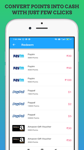 4. The most Important, withdraw! You can withdraw your points into cash by many options- Paytm, Paypal, Google play giftcard, Amazon giftcard etc.