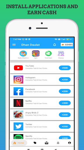 Get started by installing the Dhan Daulat application and get the experience of earning FREE money from your android device.
