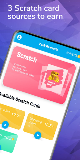 This is simplest task type, where app shows scratch cards in 3 categories. When a user clicks on any category then a scratch card appears which user has to scratch, after scratching the card if a user wins then he gets to see a video & user gets rewarded for watching the video in form of in-app currency. In-app currency can be converted into real money & users can withdraw that money to their PayPal or Paytm account.