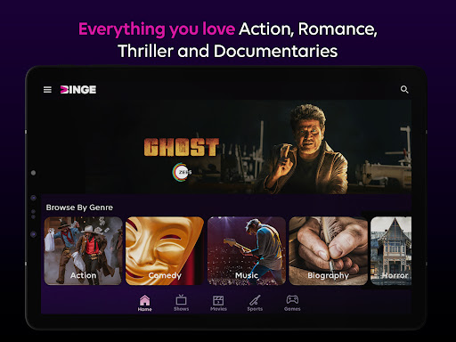 • Enjoy unlimited entertainment across multiple genres, including Action, Crime, Romance, Thriller, Comedy, Drama, Sports, Kids & much more.
