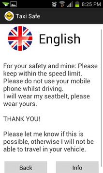 It displays a message that you can show to the taxi driver, to keep within the speed limits.
